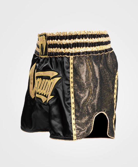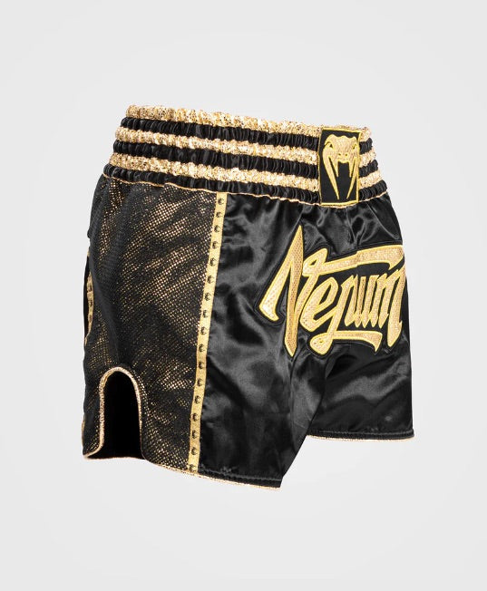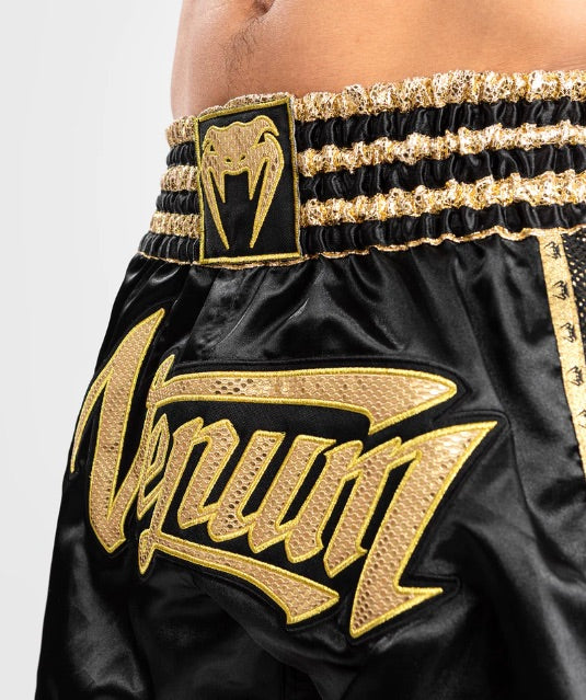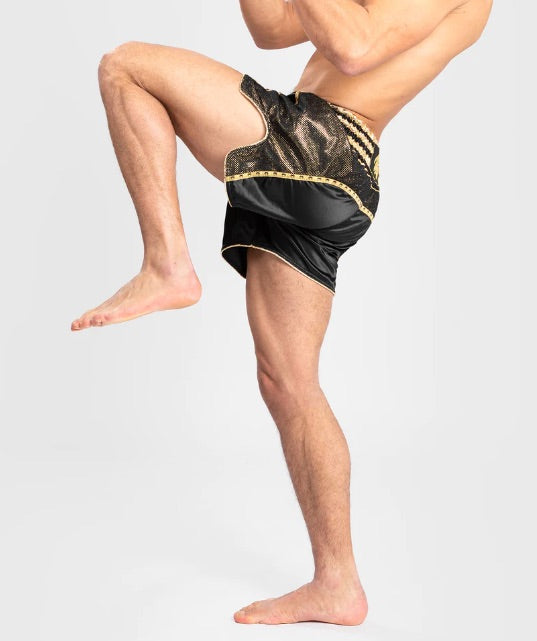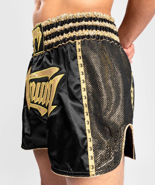 Venum Thai boksshorts zijn ontworpen met Thaise traditie en zijn gemaakt van lichtgewicht en flexibel polyester voor maximale mobiliteit in de ring. Met gespleten zijkanten voor meer flexibiliteit en duurzaamheid.