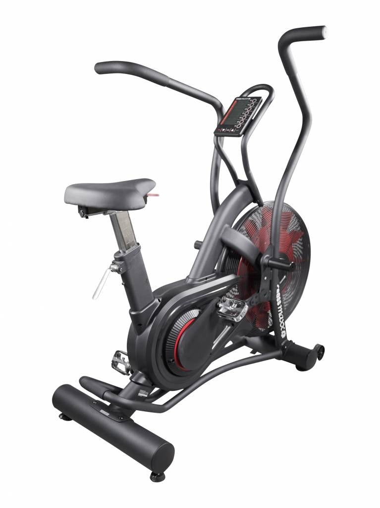 Met dual steel fan, anti-slip pedalen en transportwieltjes om de air bike gemakkelijk te kunnen verplaatsen.