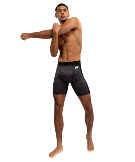 The Venum Technical 3.0 Vale Tudo Shorts in Graphite are made with flexible yet durable compression fabric to protect your lower body during BJJ, grappling and MMA training.